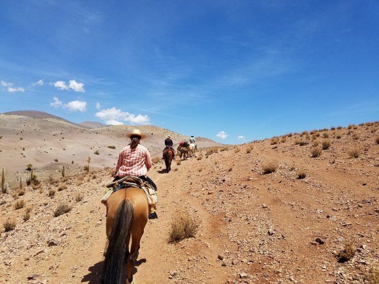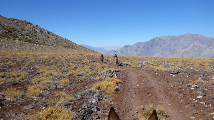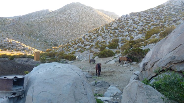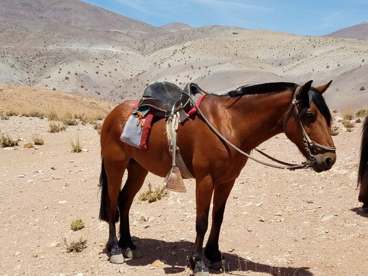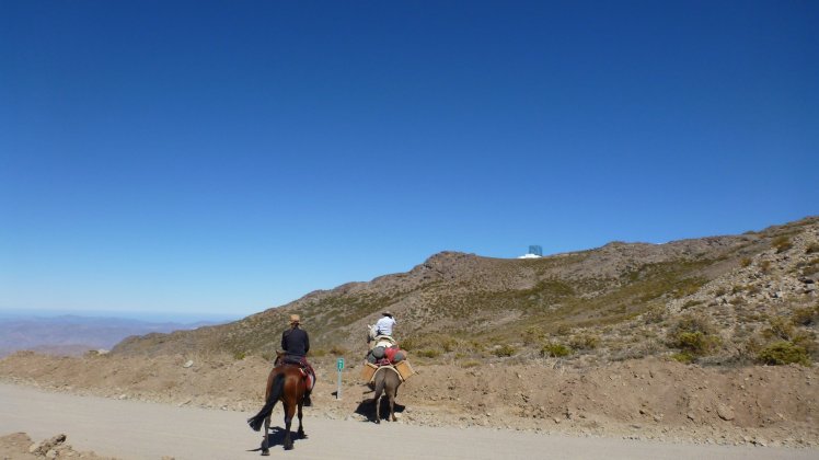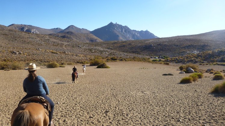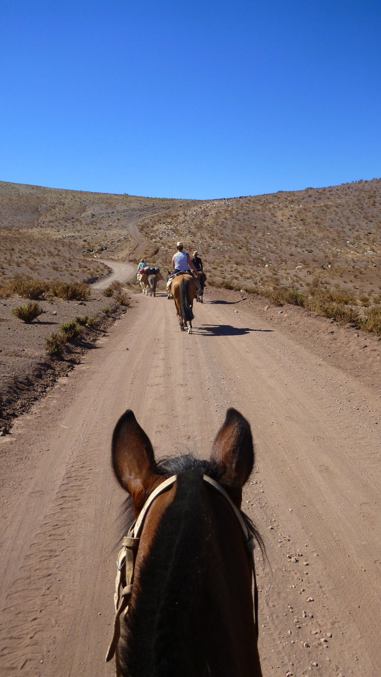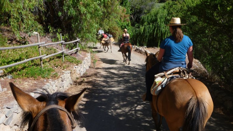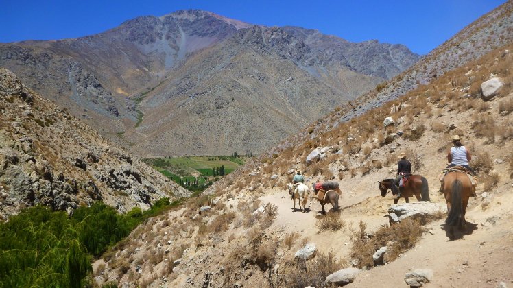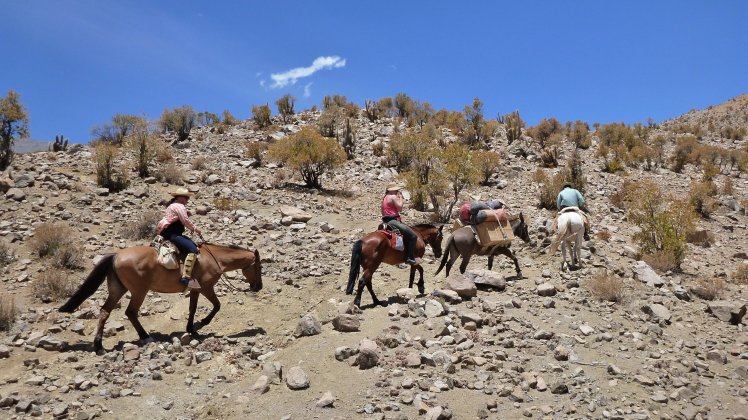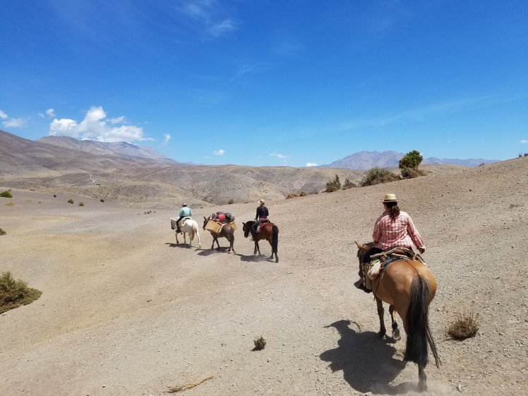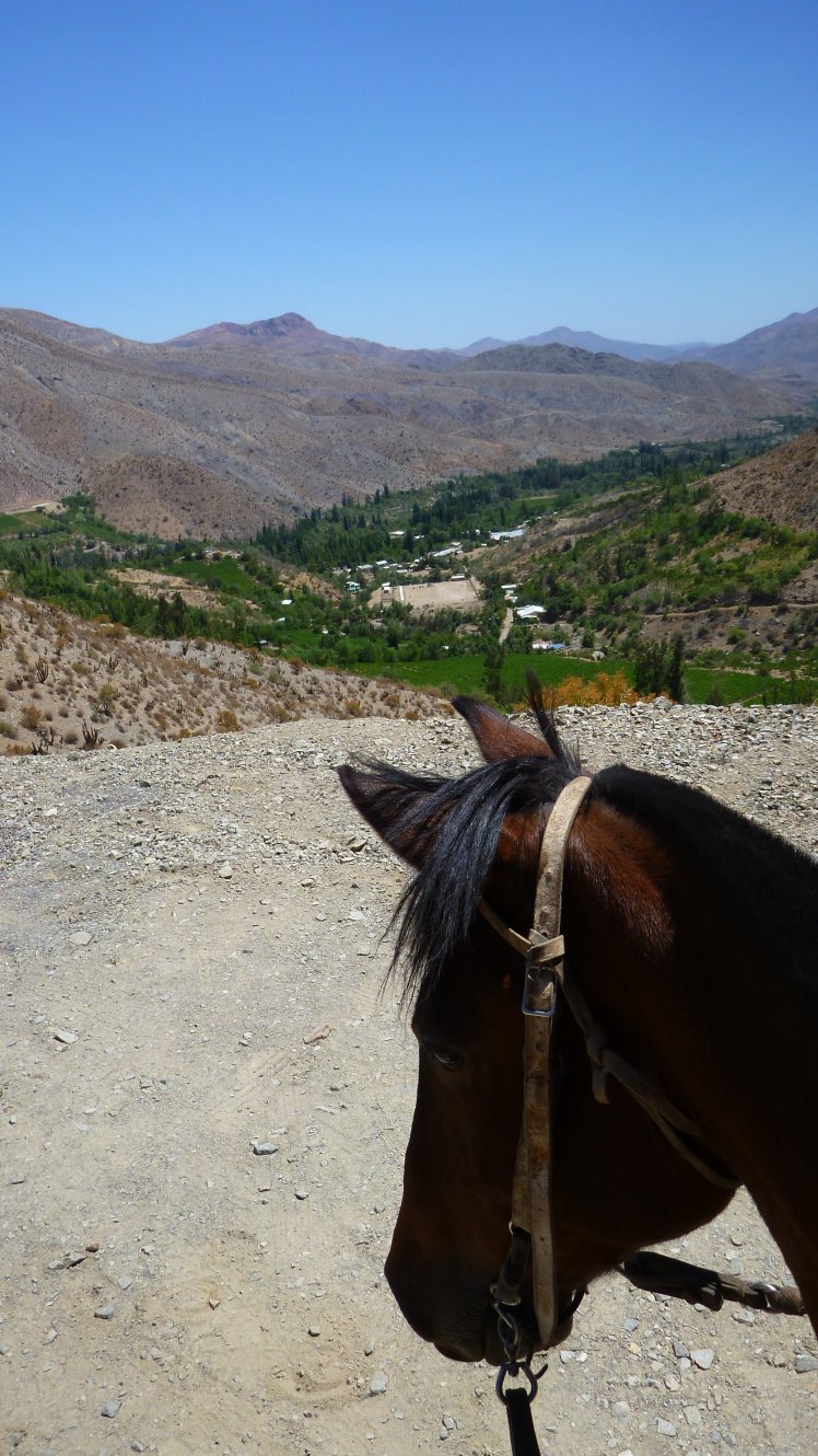 Es ging einige Höhenmeter hinauf bis wir so gegen 16:30 Uhr an unserem Tagsziel ankamen. Dort haben wir das Mula entladen, den Pferden Wasser gegeben und uns wieder auf den Weg zu einem Aussichtspunkt gemacht von wo man aus einen guten Blick ins Tal richtung Vicuña hat.