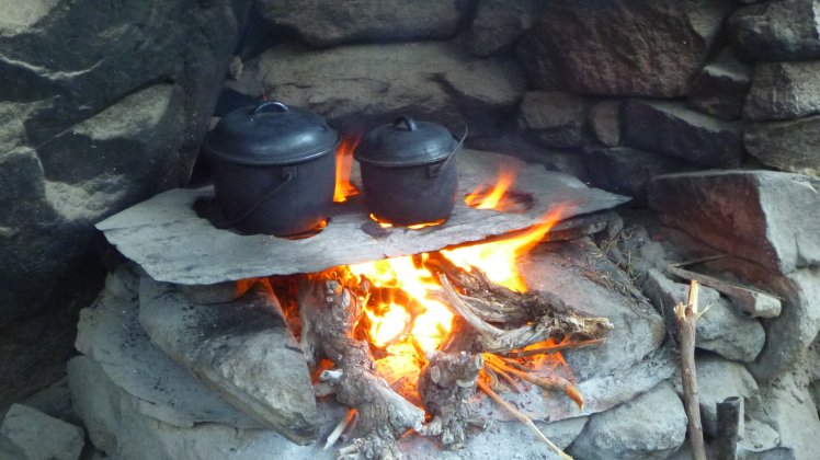 Wie ich das Nachtlager am besten beschreiben kann weiß ich gar nicht. Es war kein Haus aber ich glaube es wird hier tatsächlich als solches bezeichnet. Normalerweise wohnt/lebt (ich hoffe wirklich nur Zeitweise!!!) einer der Brüder von René dort. Jedenfalls haben wir dort unsere Schlafsäcke unter freiem Himmel ausgerollt und Feuer gemacht um das Abendessen zu kochen.