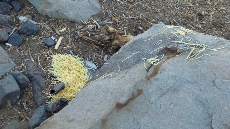 Wer mich kennt weiß was für eine Granate ich in der Küche bin. Erstmal war das Abendessen noch gefroren (wie das geht bei 30°C und ständiger Sonneneinstrahlung ist mir Schleierhaft). Dann habe ich Nudeln gekocht – keine große Sache, das kriege sogar ich hin. Ja, denkste 😀 beim Abschütten habe ich irgendwie nicht nur das Wasser abgeschüttet sondern auch 90% der Nudeln :D.